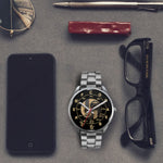 Japanese movement and strengthened alloy body with stainless steel back. 100% real genuine leather / stainless steel band.
