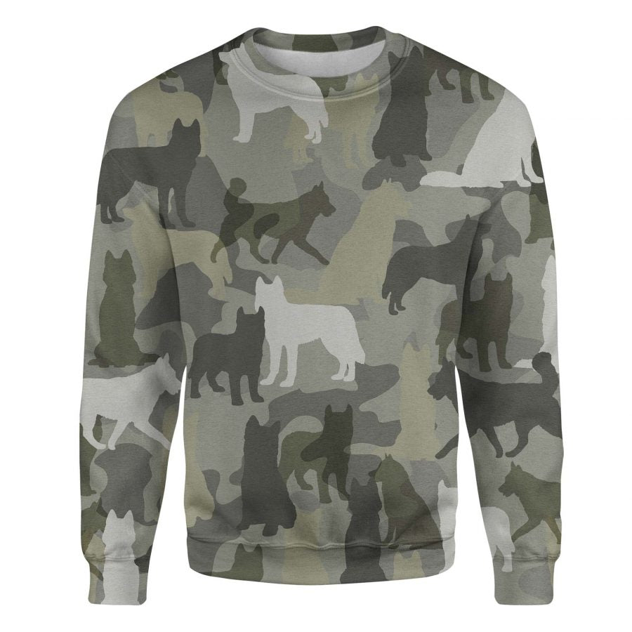 Enhance your husky's wardrobe with this stylish and functional camo sweater. Order now and let your furry friend enjoy the perfect blend of fashion and function.