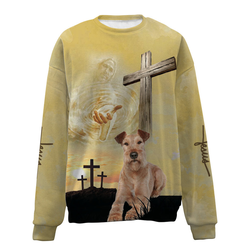 Featuring a distinctive design that showcases the beloved Irish Terrier alongside a subtle Jesus motif, this sweater is a conversation starter and a testament to your individual style. Whether you're heading out for a casual day or a special occasion, this sweater will keep you looking chic and feeling cozy.