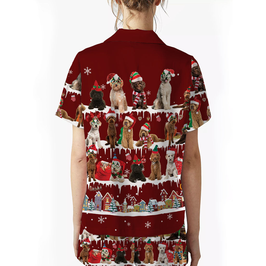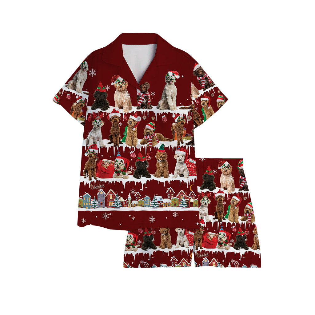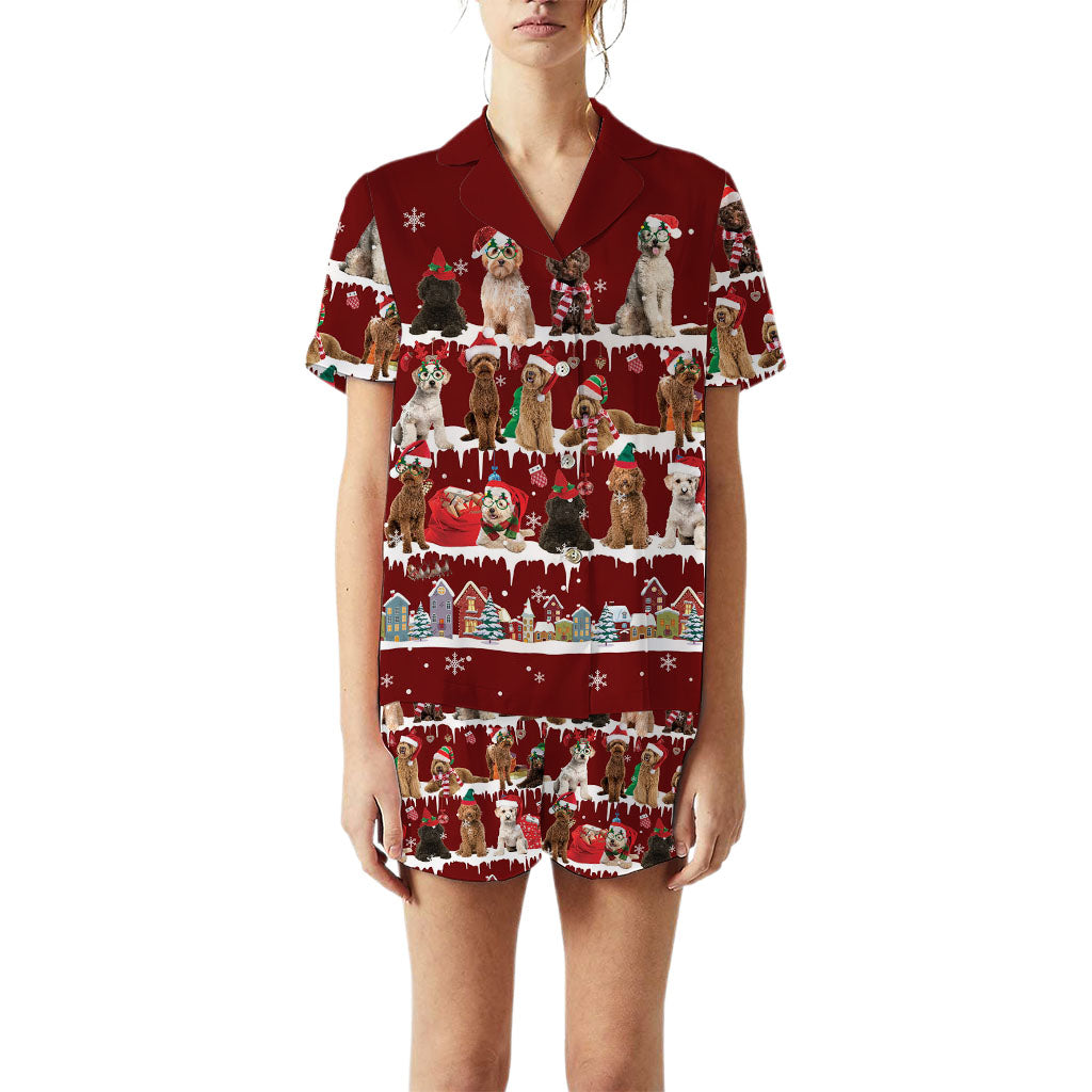 Labradoodle Dog Christmas Short Satin Pajama Set