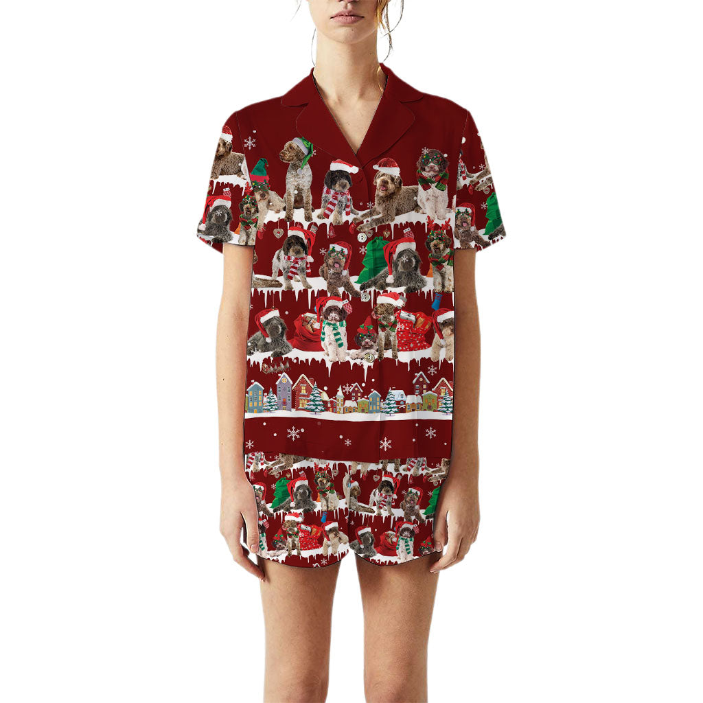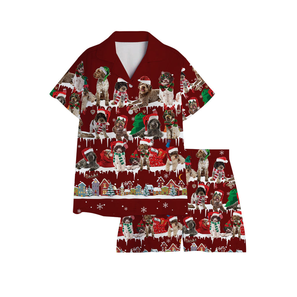 Lagotto Romagnolo Dog Christmas Short Satin Pajama Set