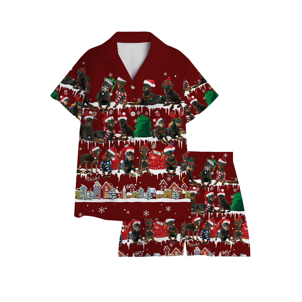 Manchester Terrier Dog Christmas Short Satin Pajama Set