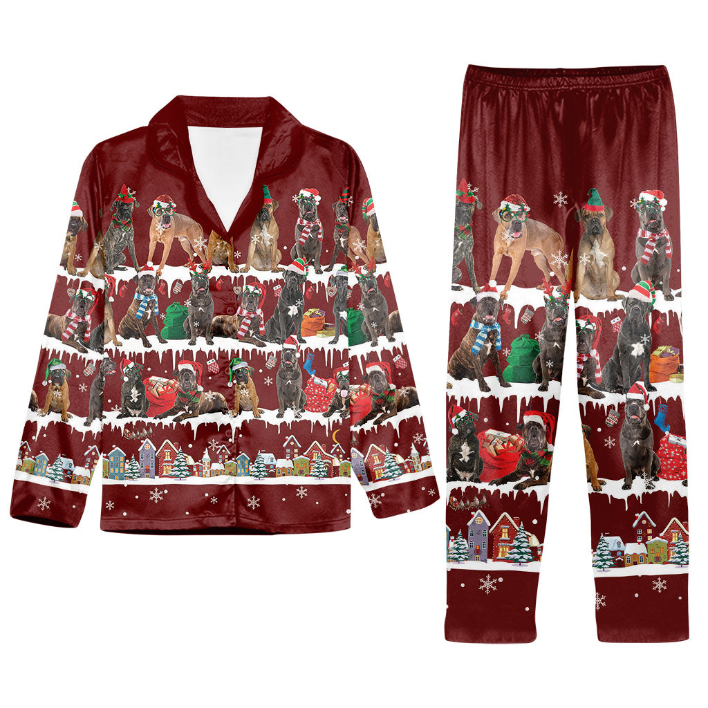 Get into the holiday spirit with this matching family Christmas pajamas set designed for Cane Corso dog lovers. This set includes pajamas for the whole family, including your furry friend. Made with high-quality materials, these pajamas are perfect for cozy nights by the fire or opening presents on Christmas morning. Show off your love for your Cane Corso in style with this adorable and festive matching pajama set.