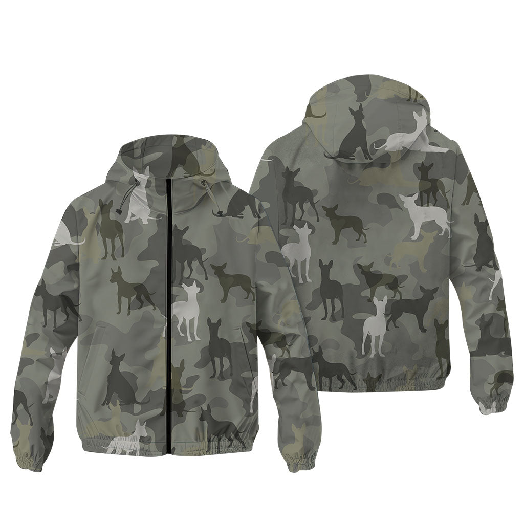 Mexican Hairless Camouflage Windbreaker - Camo Dog Print Hooded Jacket