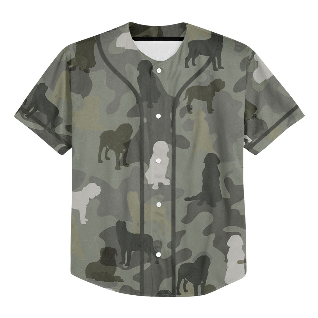 Neapolitan Mastiff Camouflage Baseball Jersey - Camo Pattern Dog Shirt