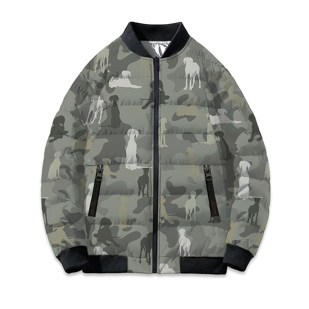 Saluki Camo Puffer Bomber Jacket - Warm Winter Coat For Dog Lover