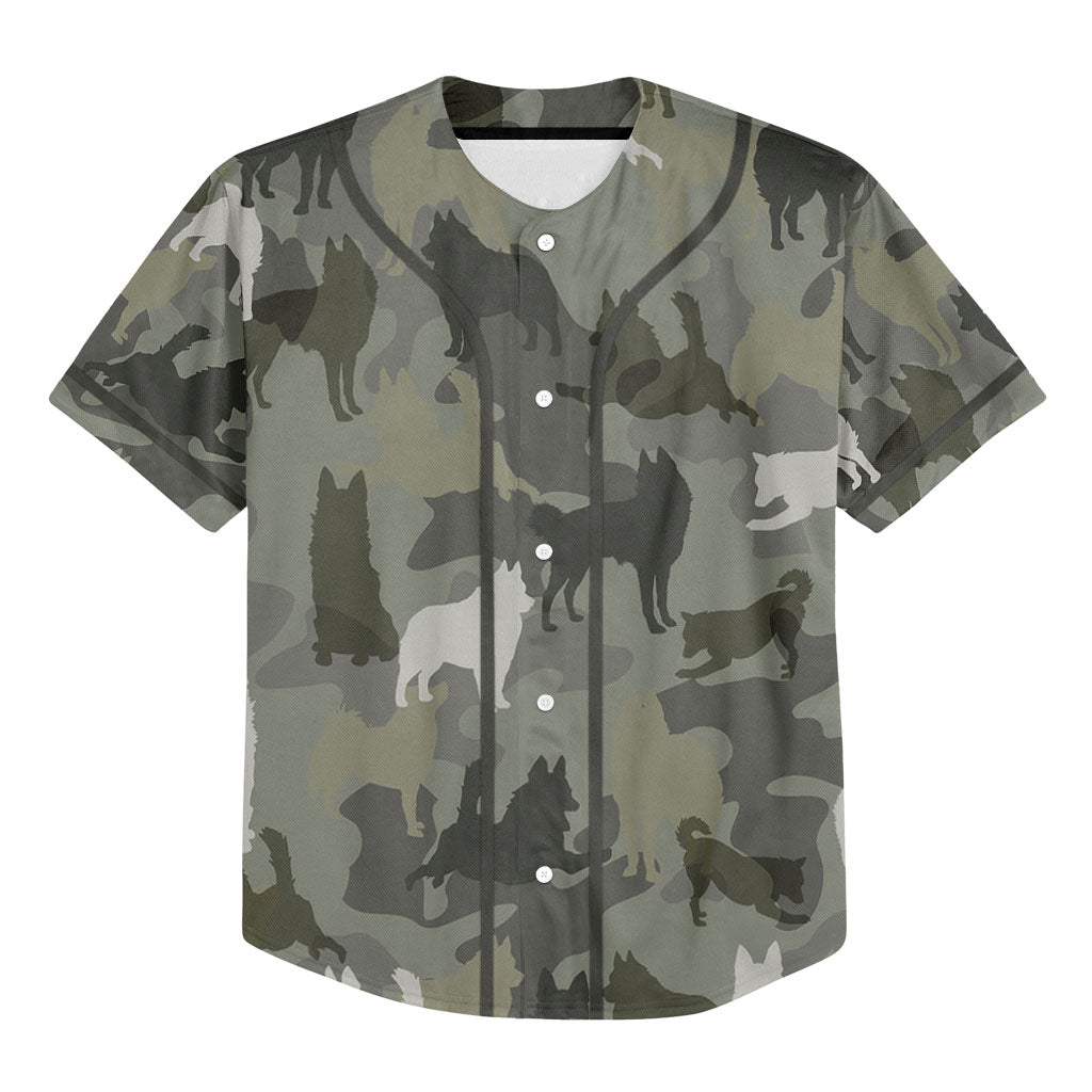 Schipperke Camouflage Baseball Jersey - Camo Pattern Dog Shirt