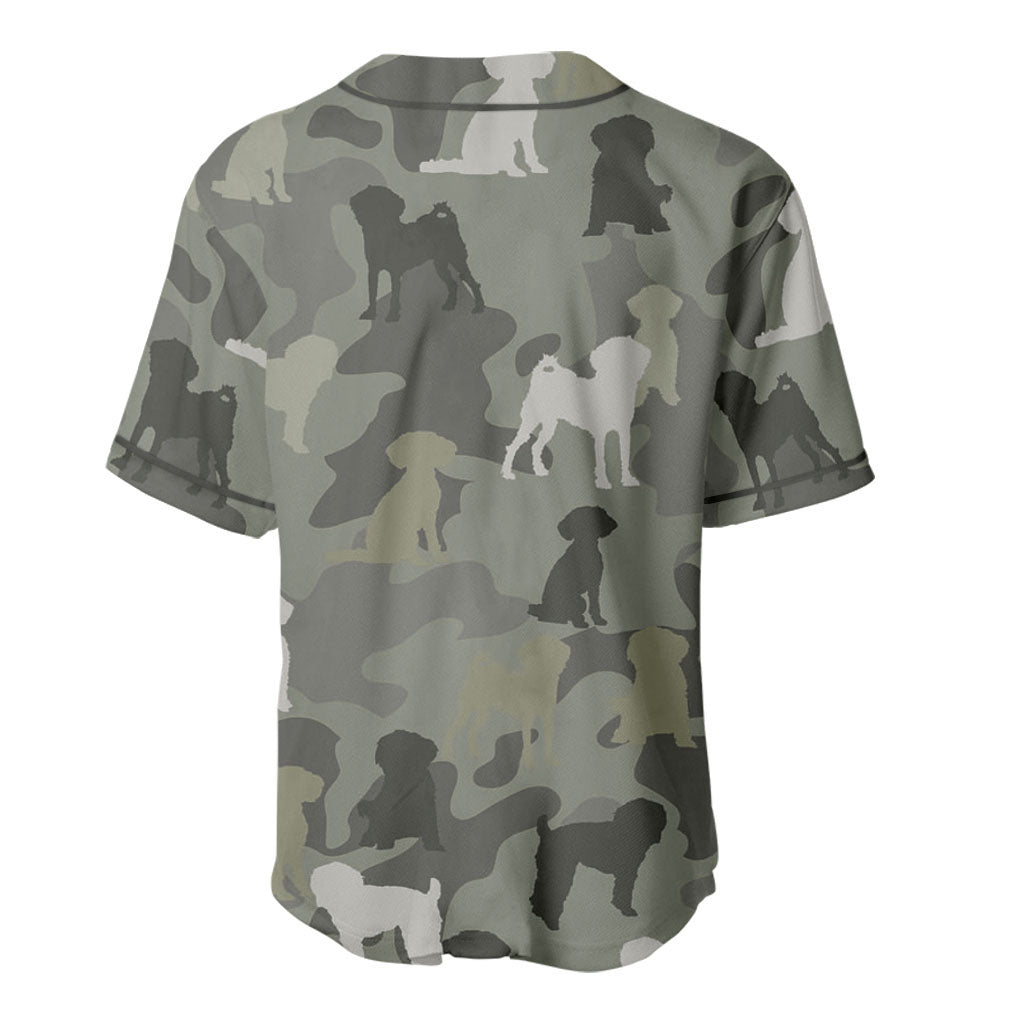 This Schnoodle Camouflage Baseball Jersey features a stylish camo pattern with adorable dog graphics, perfect for dog lovers. Made for humans, not dogs, this shirt is a fun and fashionable choice for any casual outfit. Made with high-quality materials, this jersey is comfortable and durable. Perfect for showing off your love for dogs in a unique and trendy way.