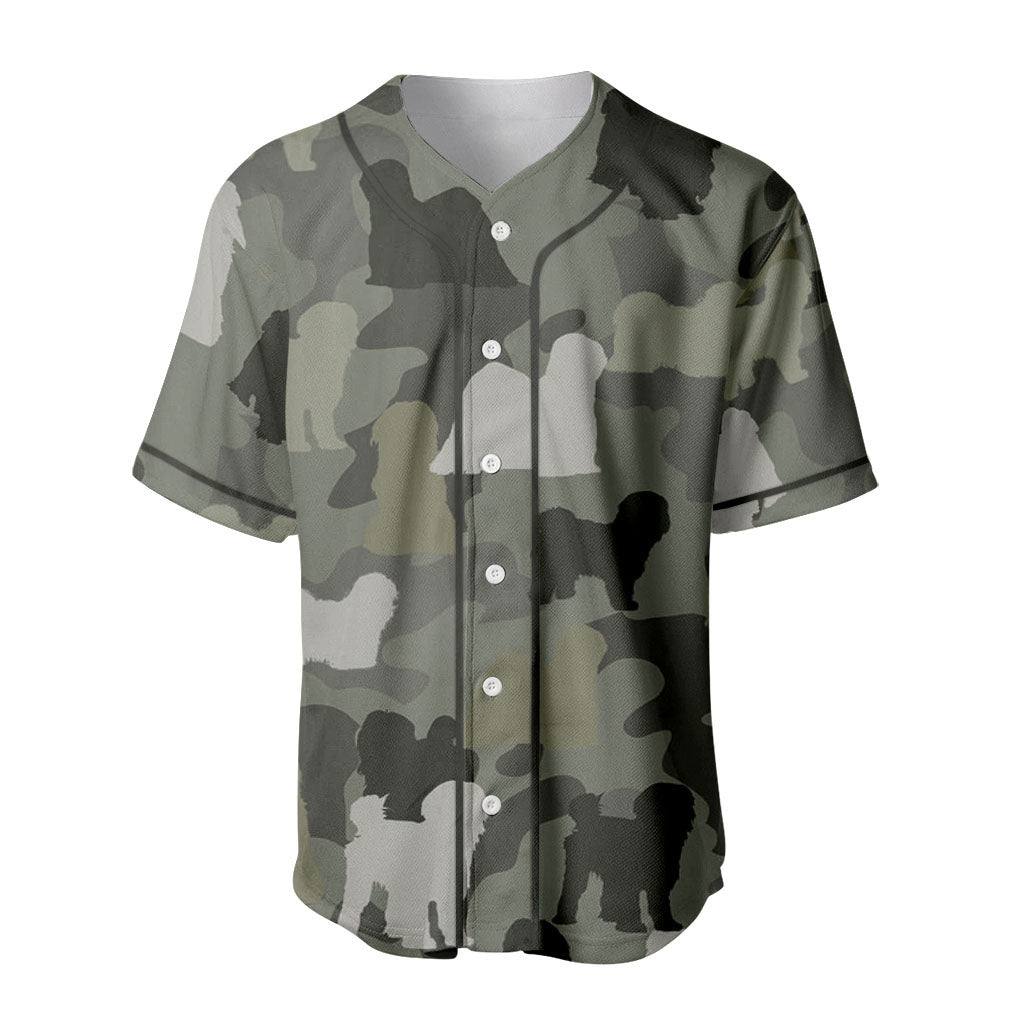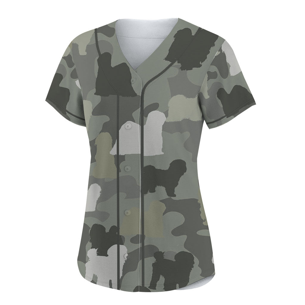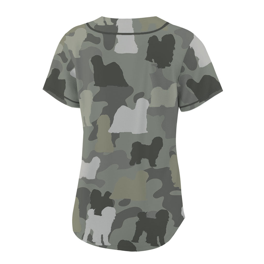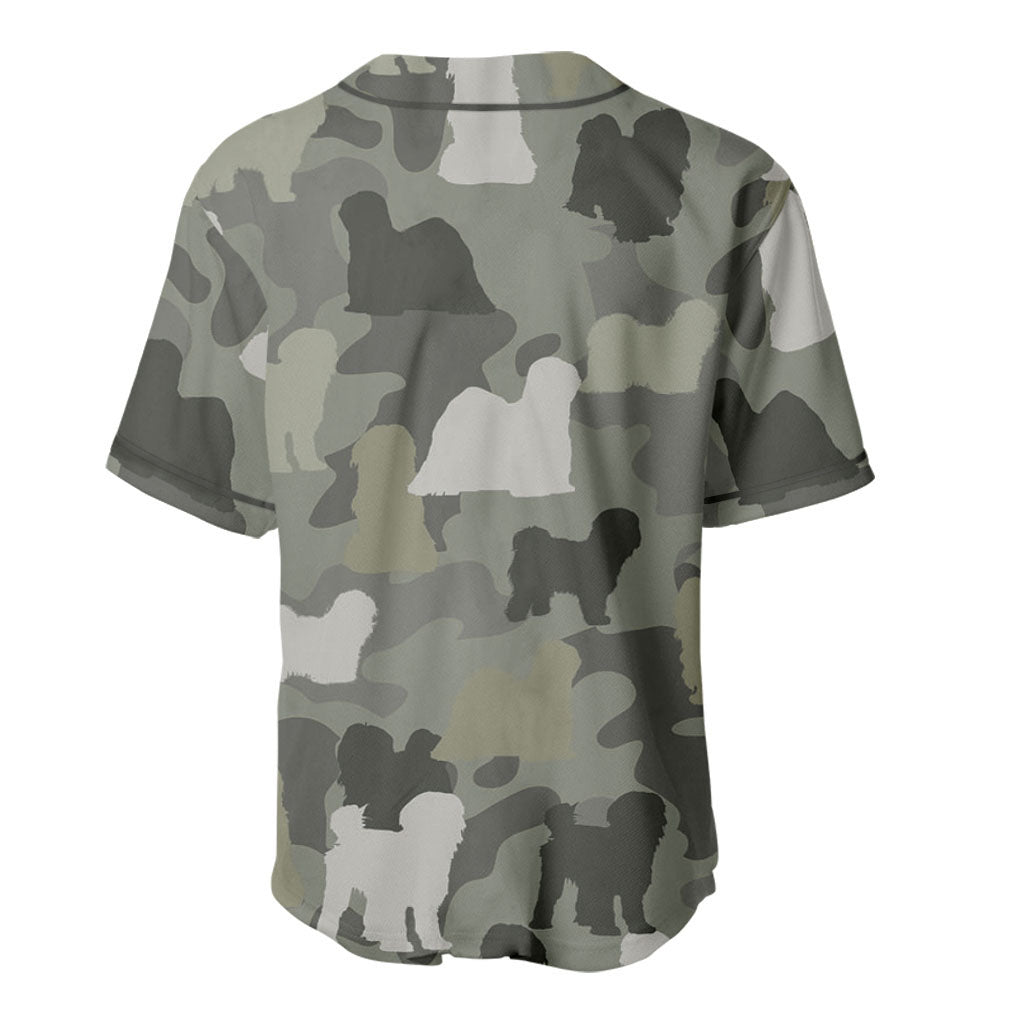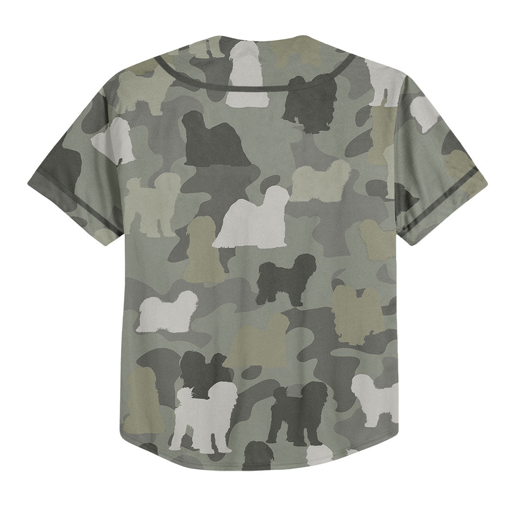 Tibetan Terrier Camouflage Baseball Jersey - Camo Pattern Dog Shirt