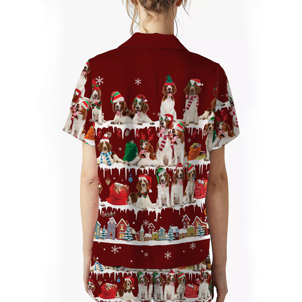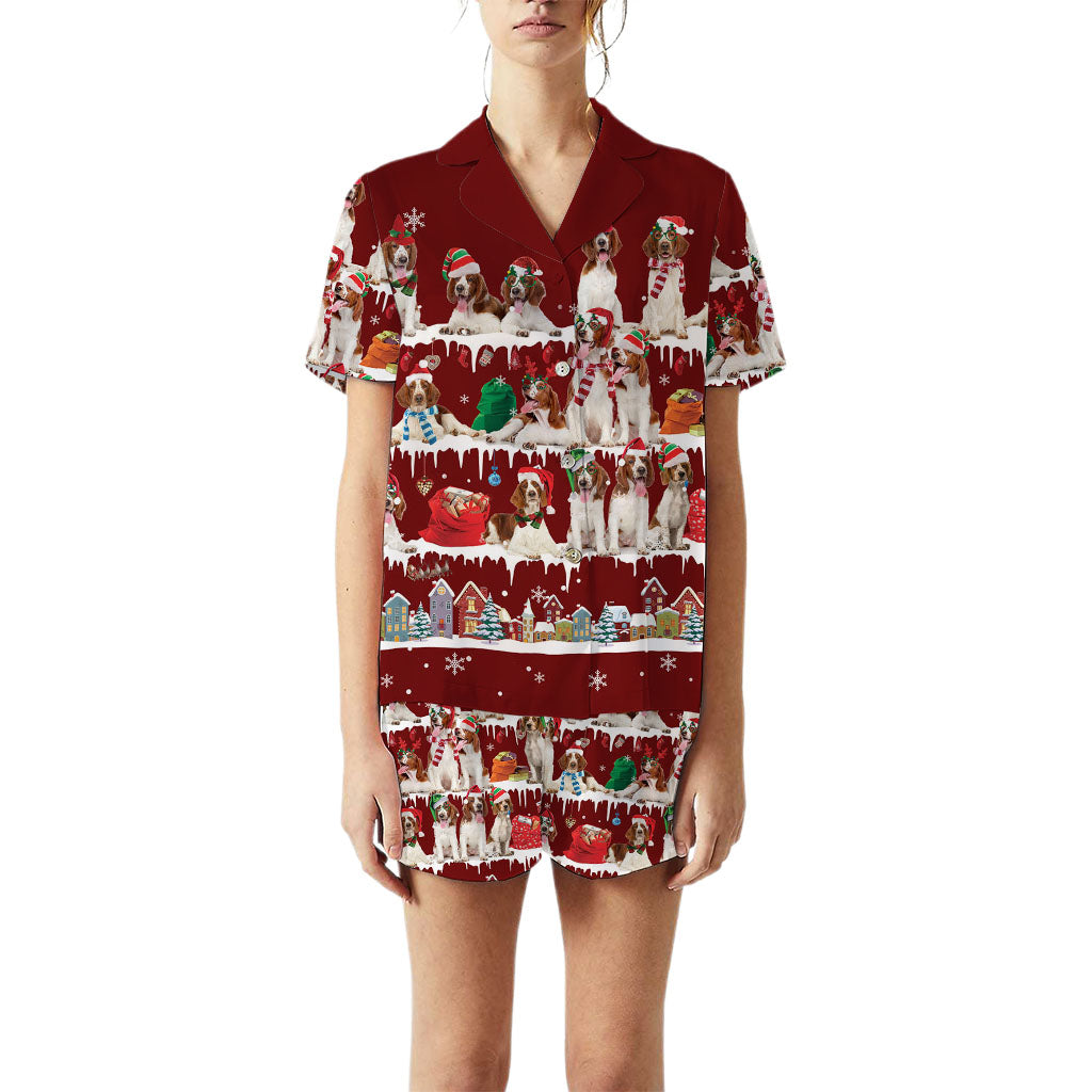 Welsh Springer Spaniel Dog Christmas Short Satin Pajama Set