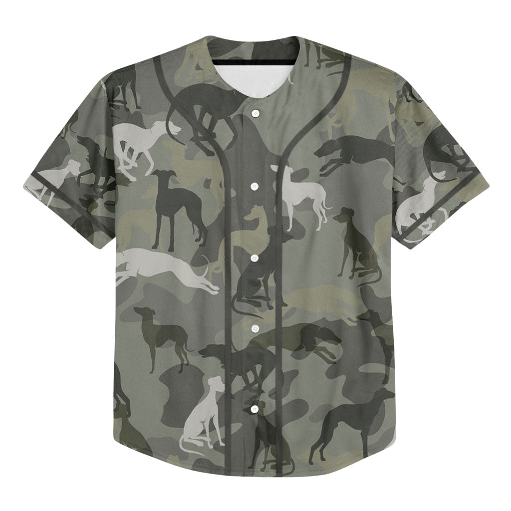 Whippet Camouflage Baseball Jersey - Camo Pattern Dog Shirt
