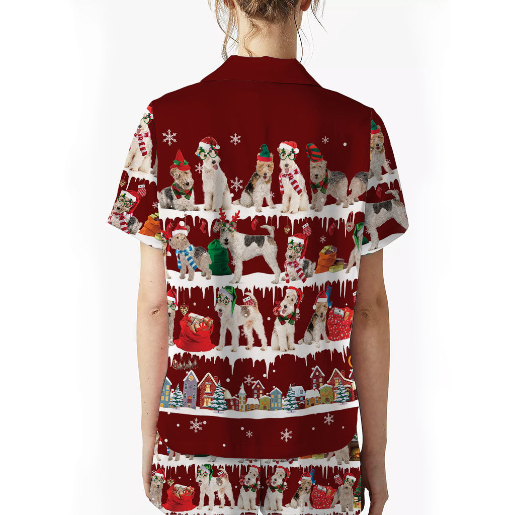 Wire Fox Terrier Dog Christmas Short Satin Pajama Set